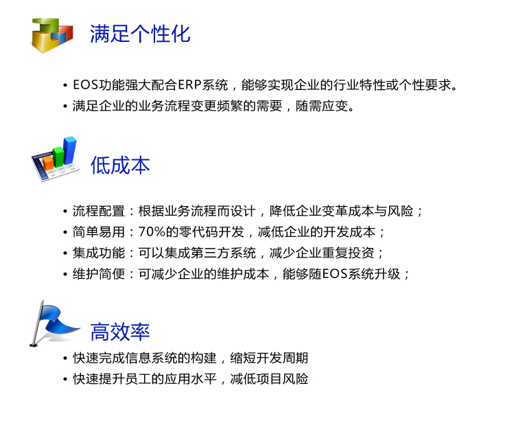 華騰EOS即華騰企業(yè)應(yīng)用開(kāi)發(fā)平臺(tái),是華騰信息的核心和靈魂。華騰各種產(chǎn)品,不論是電子政務(wù)管理軟件還是企業(yè)管理軟件、電商管理軟件,不論是中端還是高端應(yīng)用,都是基于EOS平臺(tái)開(kāi)發(fā)的。這保證了各種不同的產(chǎn)品在數(shù)據(jù)、流程和應(yīng)用上可以無(wú)縫集成,界面與操作完全一致,企業(yè)完全可以根據(jù)自己的實(shí)際需求分階段部署不同的應(yīng)用已可以在必要的時(shí)候進(jìn)行升級(jí)。